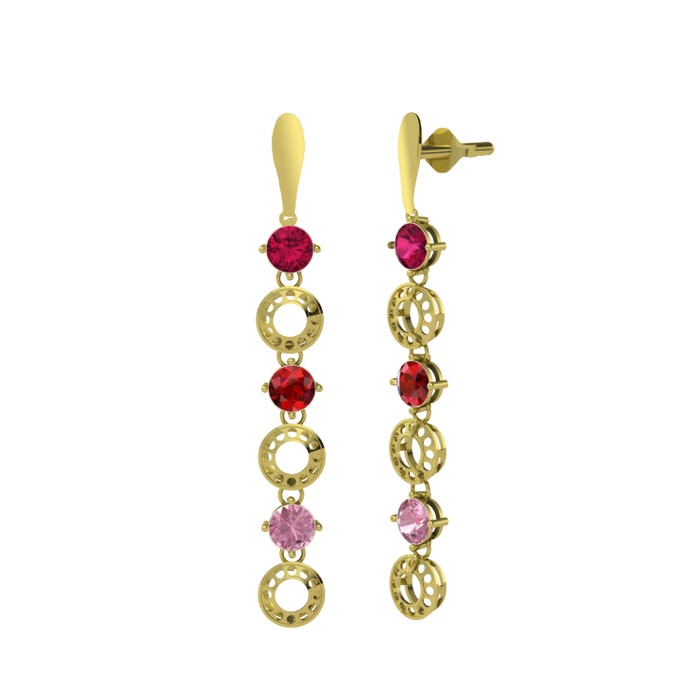 Rodolit garnet, garnet ve pembe kuvars 14 ayar altın küpe