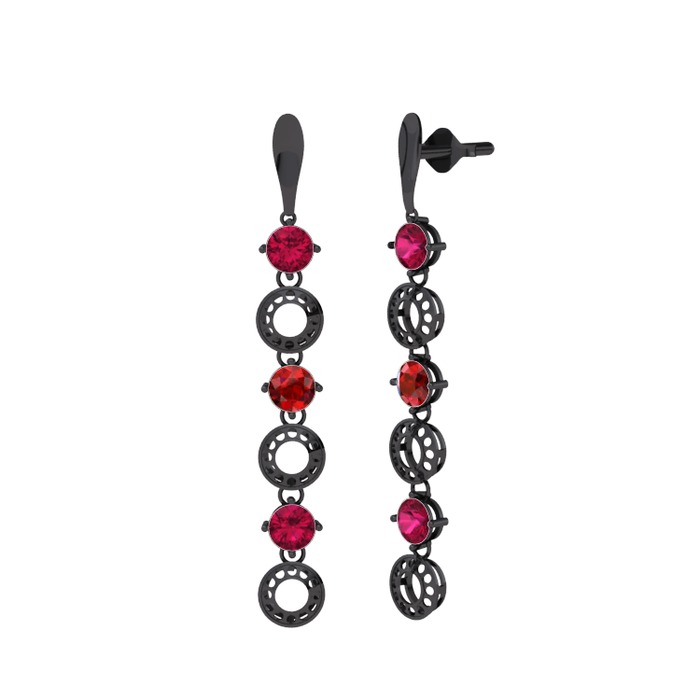 Rodolit garnet ve garnet 925 ayar siyah rodyum kaplama gümüş küpe