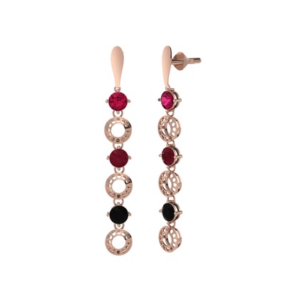 Rodolit garnet, kök yakut ve siyah zirkon 8 ayar rose altın küpe