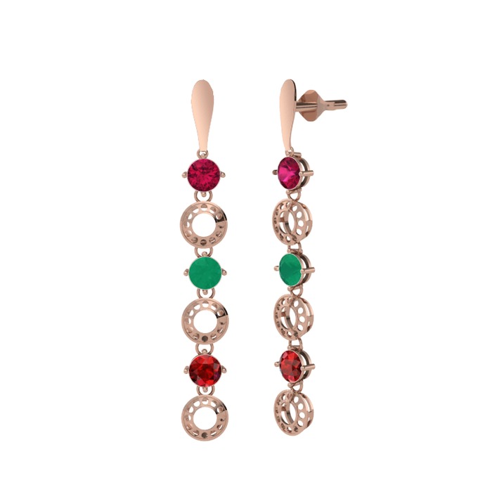 Rodolit garnet, kök zümrüt ve garnet 14 ayar rose altın küpe
