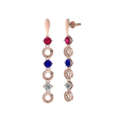 Rodolit garnet, lab safir ve swarovski 8 ayar rose altın küpe