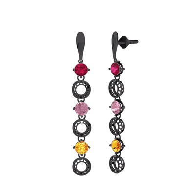 Rodolit garnet, pembe kuvars ve sitrin 925 ayar siyah rodyum kaplama gümüş küpe