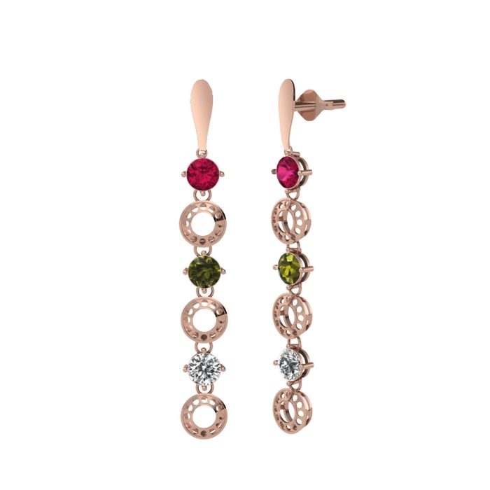 Rodolit garnet, peridot ve swarovski 8 ayar rose altın küpe