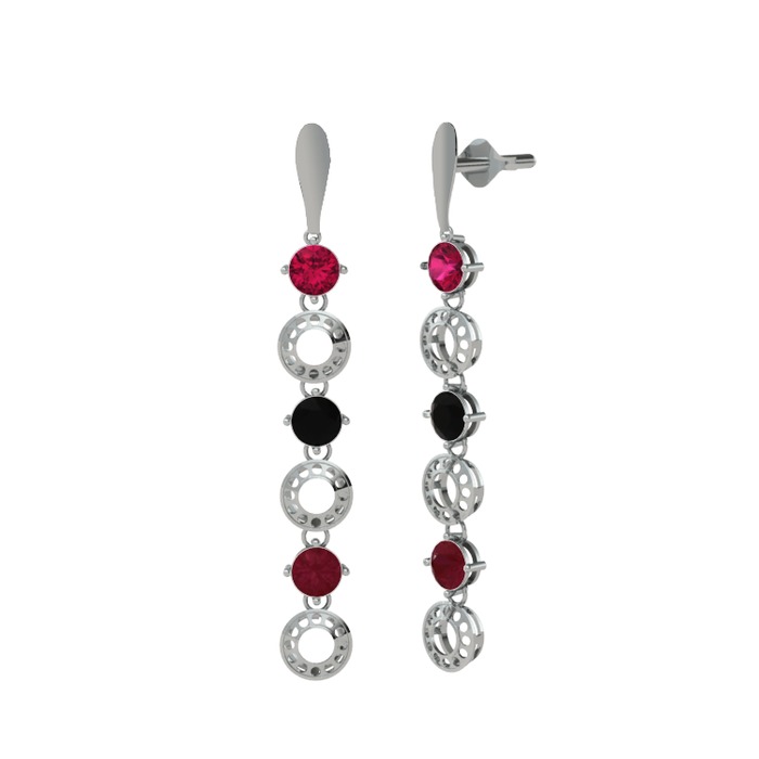 Rodolit garnet, siyah zirkon ve kök yakut 8 ayar beyaz altın küpe