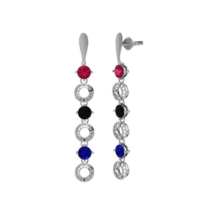 Rodolit garnet, siyah zirkon ve lab safir 925 ayar gümüş küpe
