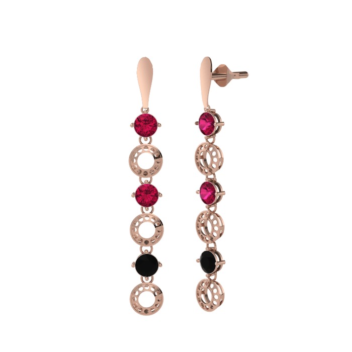 Rodolit garnet ve siyah zirkon 925 ayar rose altın kaplama gümüş küpe