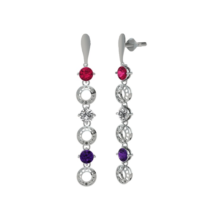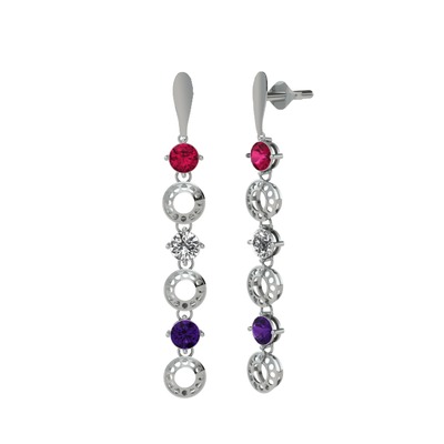 Rodolit garnet, swarovski ve ametist 8 ayar beyaz altın küpe