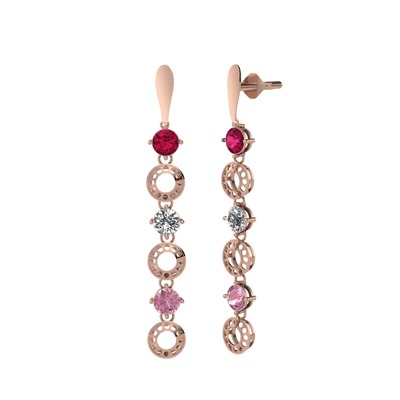 Rodolit garnet, swarovski ve pembe kuvars 18 ayar rose altın küpe