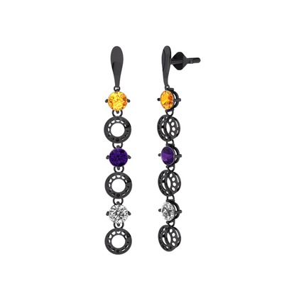 Sitrin, ametist ve swarovski 925 ayar siyah rodyum kaplama gümüş küpe