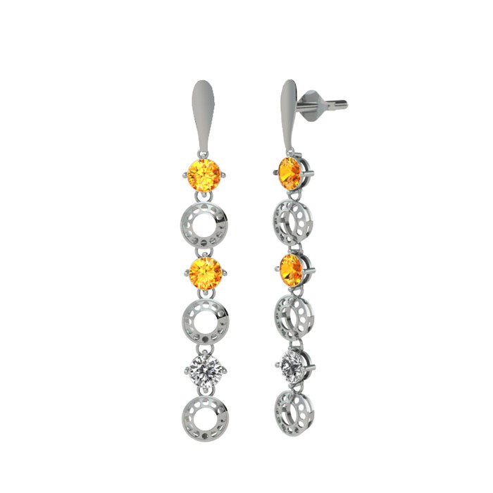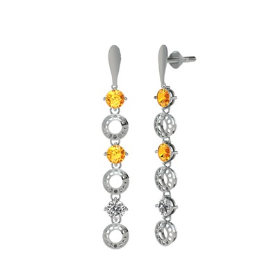 Sitrin ve beyaz zirkon 18 ayar beyaz altın küpe