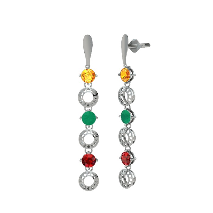 Sitrin, kök zümrüt ve garnet 14 ayar beyaz altın küpe