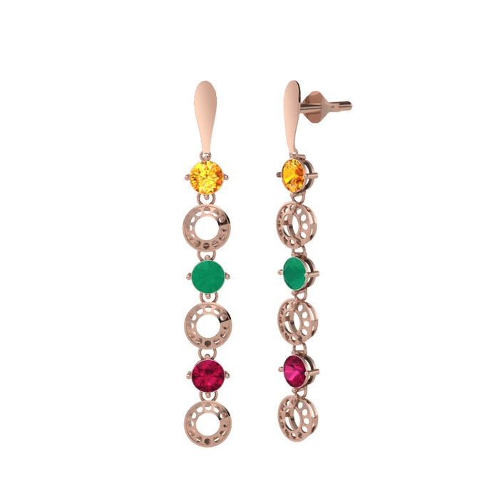 Sitrin, kök zümrüt ve rodolit garnet 14 ayar rose altın küpe