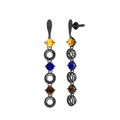 Sitrin, lab safir ve dumanlı kuvars 925 ayar siyah rodyum kaplama gümüş küpe
