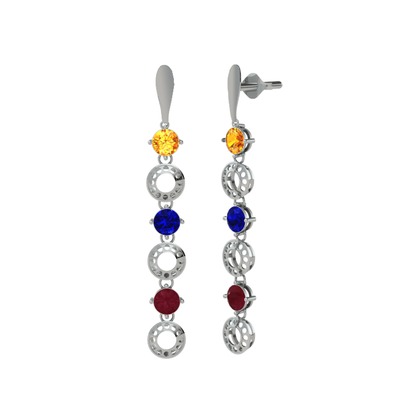 Sitrin, lab safir ve kök yakut 14 ayar beyaz altın küpe