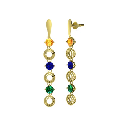 Sitrin, lab safir ve yeşil kuvars 18 ayar altın küpe