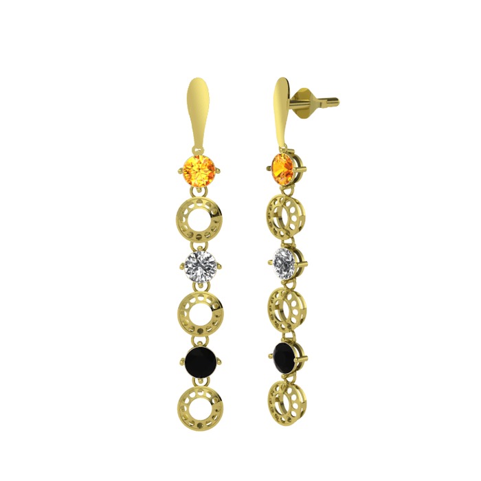 Sitrin, swarovski ve siyah zirkon 14 ayar altın küpe