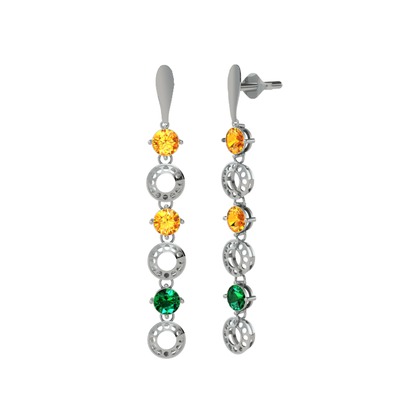 Sitrin ve yeşil kuvars 14 ayar beyaz altın küpe