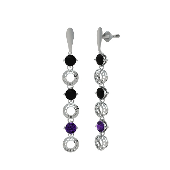 Siyah zirkon ve ametist 18 ayar beyaz altın küpe