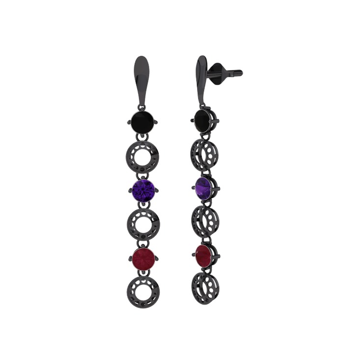 Siyah zirkon, ametist ve kök yakut 925 ayar siyah rodyum kaplama gümüş küpe
