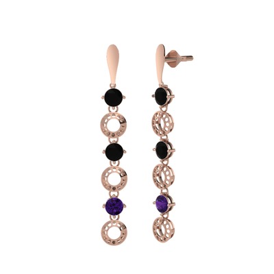 Siyah zirkon ve ametist 925 ayar rose altın kaplama gümüş küpe