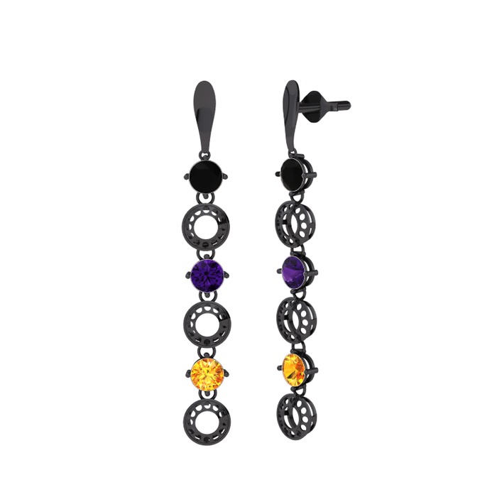 Siyah zirkon, ametist ve sitrin 925 ayar siyah rodyum kaplama gümüş küpe