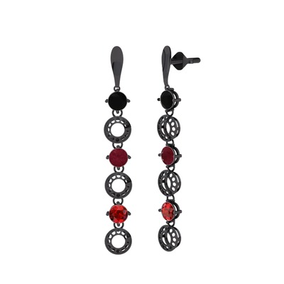 Siyah zirkon, kök yakut ve garnet 925 ayar siyah rodyum kaplama gümüş küpe