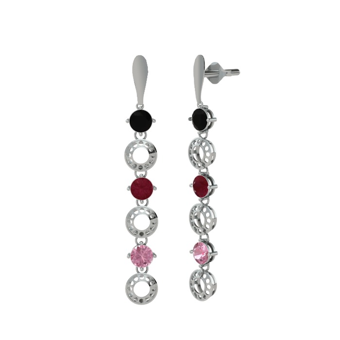 Siyah zirkon, kök yakut ve pembe kuvars 925 ayar gümüş küpe