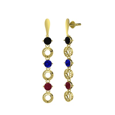 Siyah zirkon, lab safir ve kök yakut 925 ayar altın kaplama gümüş küpe