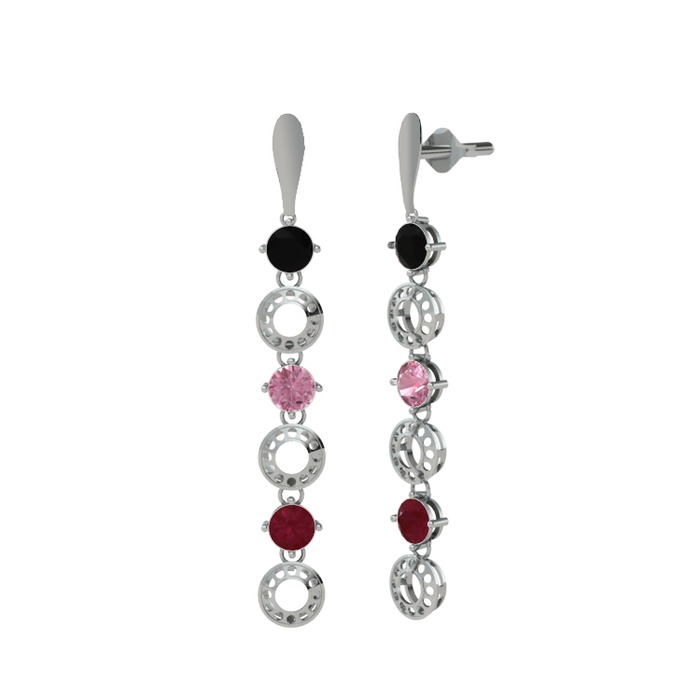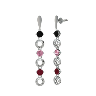 Siyah zirkon, pembe kuvars ve kök yakut 14 ayar beyaz altın küpe