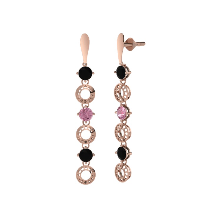 Siyah zirkon ve pembe kuvars 925 ayar rose altın kaplama gümüş küpe