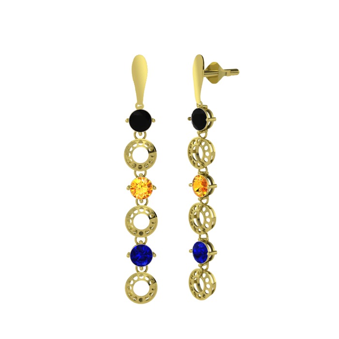 Siyah zirkon, sitrin ve lab safir 925 ayar altın kaplama gümüş küpe