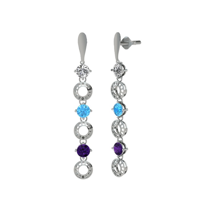 Swarovski, akuamarin ve ametist 18 ayar beyaz altın küpe