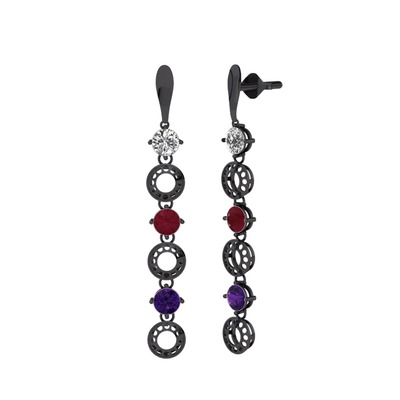 Swarovski, kök yakut ve ametist 925 ayar siyah rodyum kaplama gümüş küpe