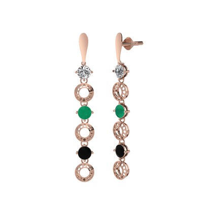 Swarovski, kök zümrüt ve siyah zirkon 925 ayar rose altın kaplama gümüş küpe