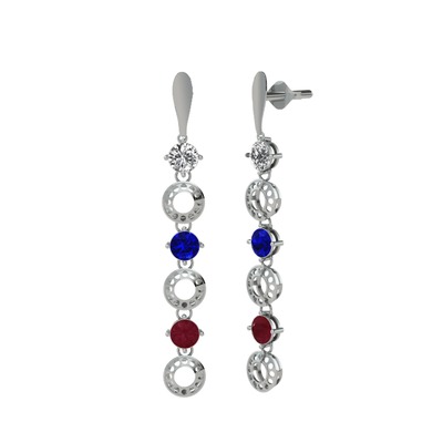 Swarovski, lab safir ve kök yakut 18 ayar beyaz altın küpe
