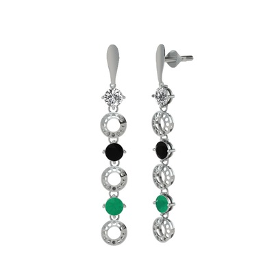 Swarovski, siyah zirkon ve kök zümrüt 925 ayar gümüş küpe