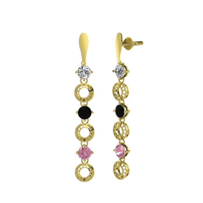 Swarovski, siyah zirkon ve pembe kuvars 18 ayar altın küpe