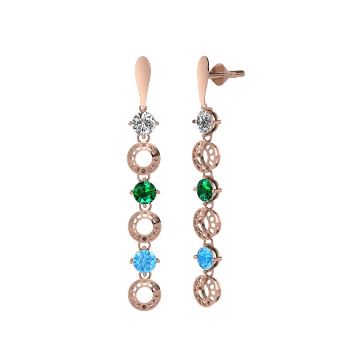 Swarovski, yeşil kuvars ve akuamarin 14 ayar rose altın küpe