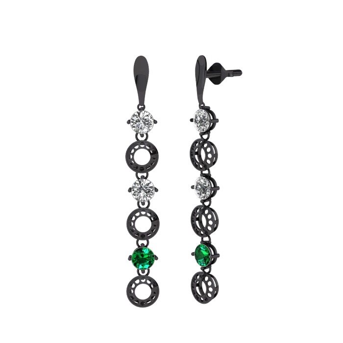 Swarovski ve yeşil kuvars 925 ayar siyah rodyum kaplama gümüş küpe