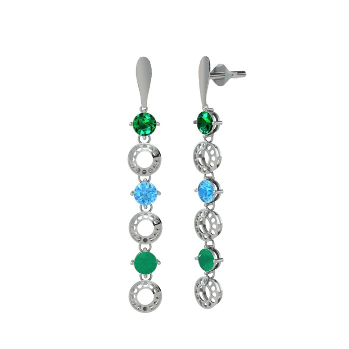 Yeşil kuvars, akuamarin ve kök zümrüt 18 ayar beyaz altın küpe
