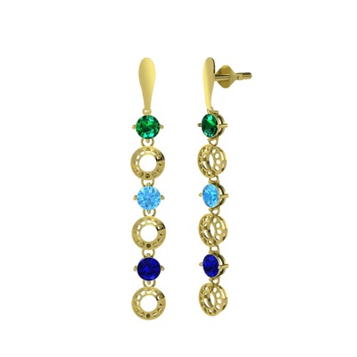 Yeşil kuvars, akuamarin ve lab safir 14 ayar altın küpe