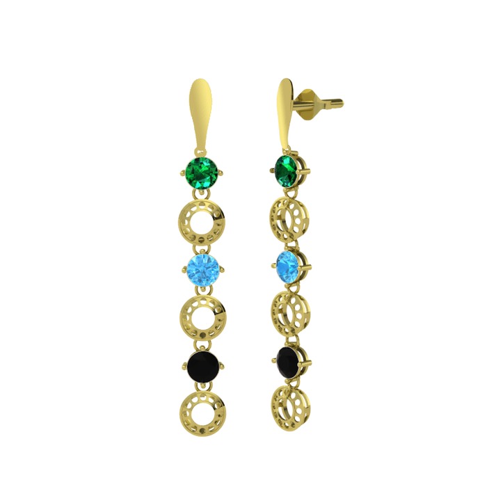 Yeşil kuvars, akuamarin ve siyah zirkon 14 ayar altın küpe