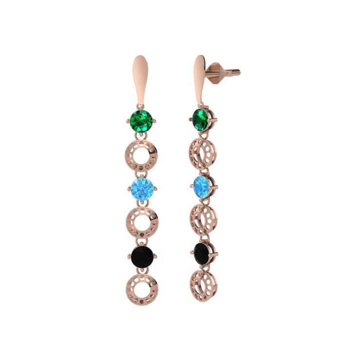 Yeşil kuvars, akuamarin ve siyah zirkon 18 ayar rose altın küpe