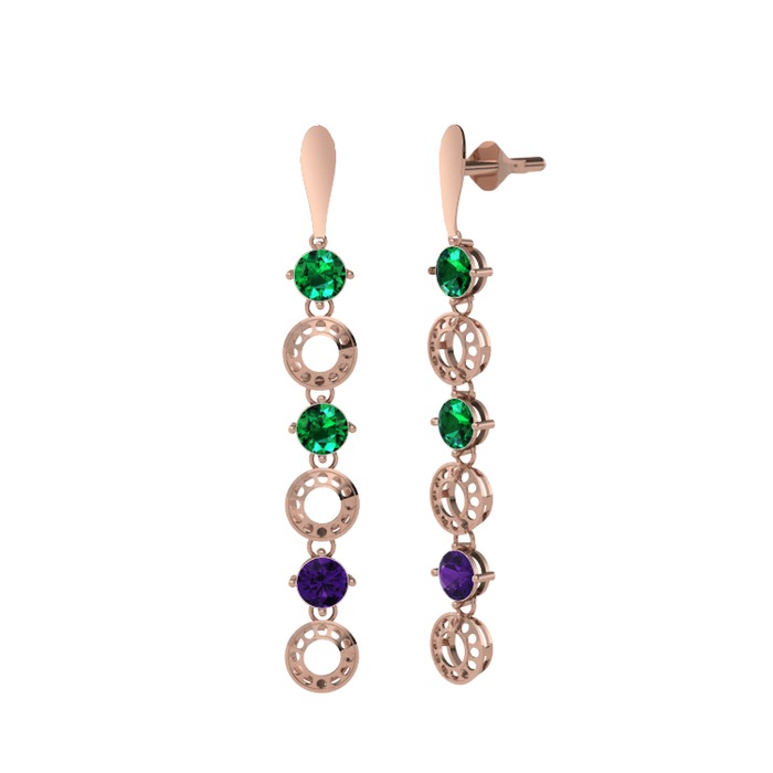 Yeşil kuvars ve ametist 925 ayar rose altın kaplama gümüş küpe