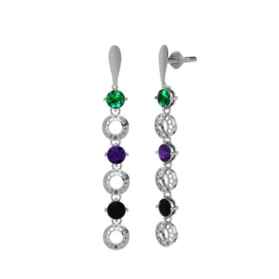 Yeşil kuvars, ametist ve siyah zirkon 8 ayar beyaz altın küpe