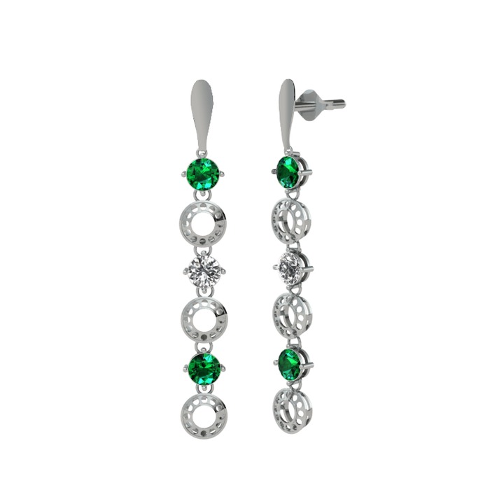 Yeşil kuvars ve beyaz zirkon 18 ayar beyaz altın küpe