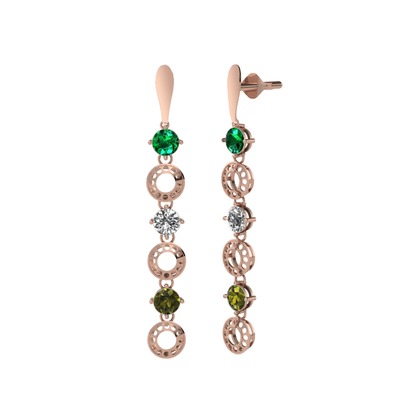 Yeşil kuvars, beyaz zirkon ve peridot 925 ayar rose altın kaplama gümüş küpe