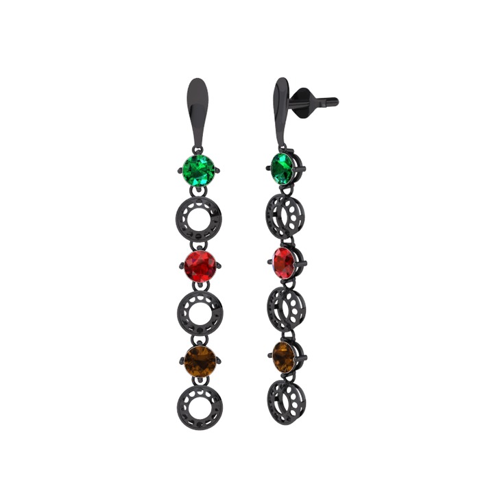Yeşil kuvars, garnet ve dumanlı kuvars 925 ayar siyah rodyum kaplama gümüş küpe