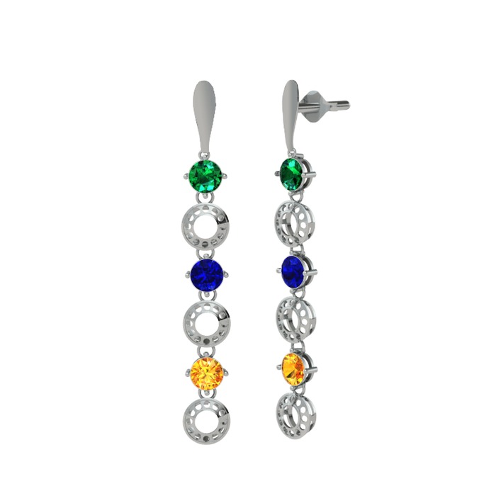 Yeşil kuvars, lab safir ve sitrin 14 ayar beyaz altın küpe