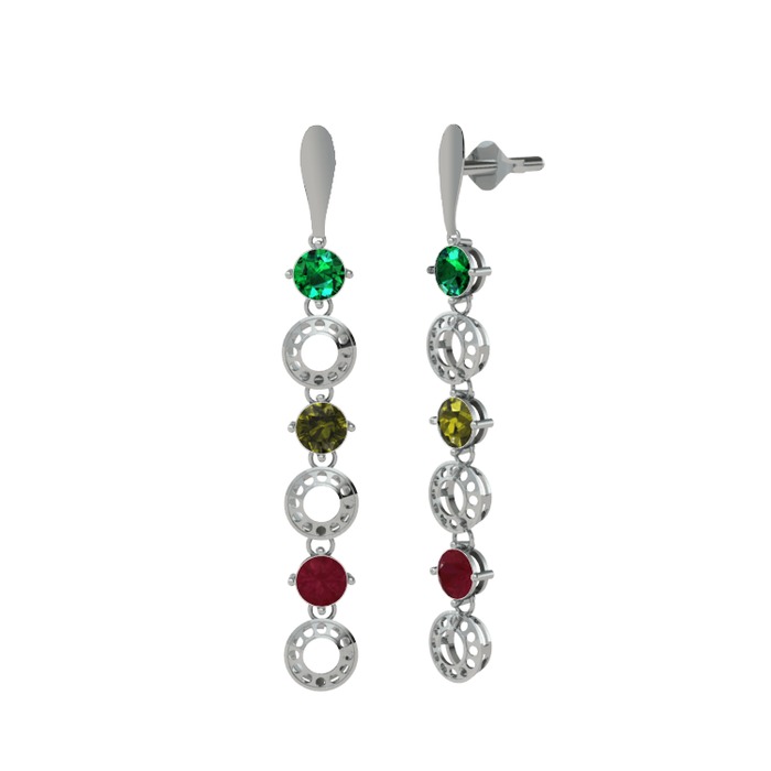 Yeşil kuvars, peridot ve kök yakut 14 ayar beyaz altın küpe